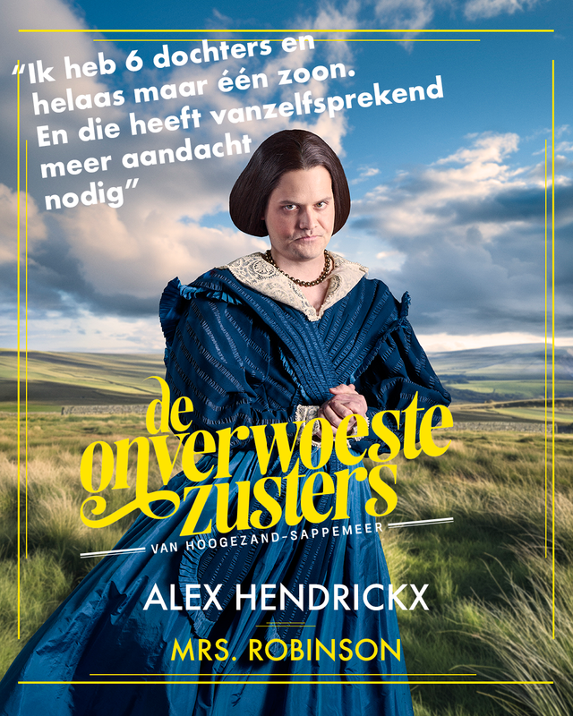 Rijke society-dame met een zwak voor jonge mannen - vooral voor Branwell Brontë. Denk: de “cougar” van de 19e eeuw. Glamour, intrige en genoeg schandaal om de pastorie te laten schudden. Alex Hendrick neemt daarnaast o.a. ook de rol van Branwell Brontë en Heathcliff voor zijn rekening.